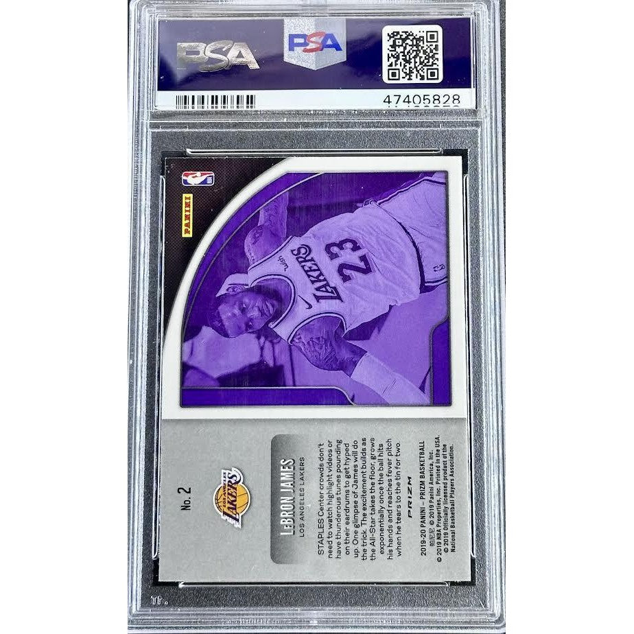 Elevate your basketball collection with the 2019 Panini Prizm Get Hyped! Silver Prizm #2 PSA 10, featuring LeBron James in dynamic action with eye-catching silver Prizm foil. Part of the premium Get Hyped! insert set, this card highlights LeBron’s explosive athleticism and energy, making it a standout piece for modern collectors.