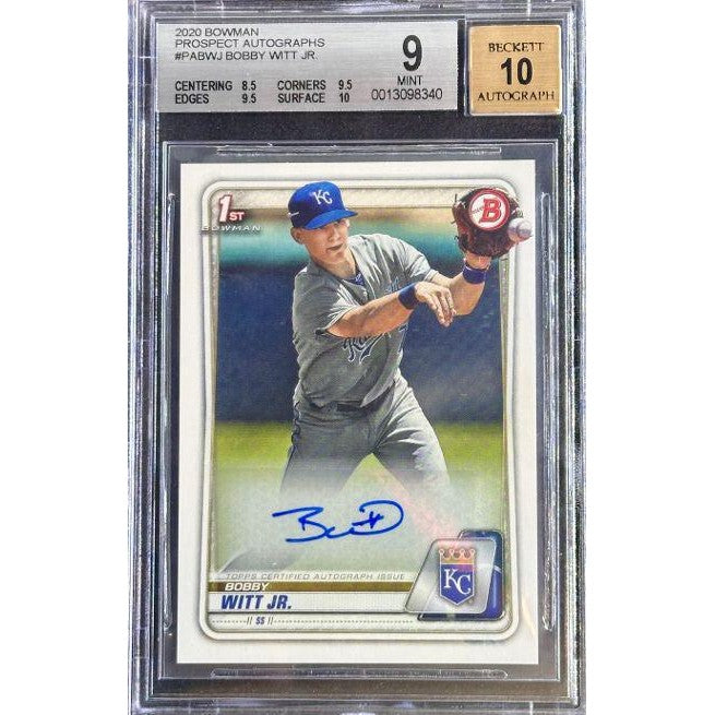 Bobby Witt Jr. has quickly become one of the most exciting players in the league, and his 2020 Bowman Prospect Autograph is considered a must-own piece for collectors. With its strong Beckett 9 grade and authentic signature, this card delivers both investment potential and display-worthy appeal for years to come.