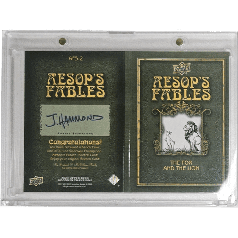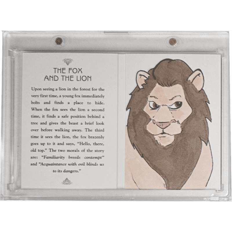 Discover the timeless wisdom of Aesop's fables with The Fox & The Lion booklet card, signed by renowned artist J. Hammond! Immerse yourself in this beautifully illustrated story and be inspired by its moral lessons on courage and cleverness. A must-have for any fable enthusiast!