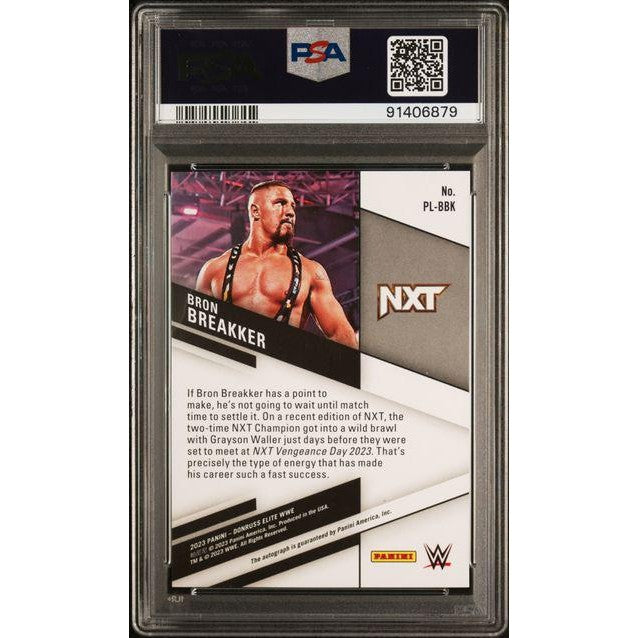 Bring powerhouse intensity to your wrestling collection with this Bron Breakker 2023 Elite WWE Pen Pals Auto – Red Parallel #PLBBK, graded PSA 9. Featuring an on-card autograph from one of WWE’s fastest-rising superstars, this Pen Pals Red edition delivers premium quality, rarity, and strong long-term upside.