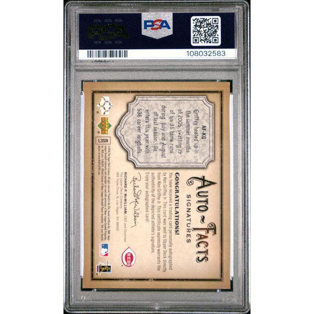 Graded PSA 6, this card remains a fully authenticated Ken Griffey Jr. autograph, encapsulated and preserved for long-term protection. Griffey’s signature continues to be one of the most recognizable and collectible in the hobby, and certified autograph cards from Upper Deck remain highly respected among collectors.