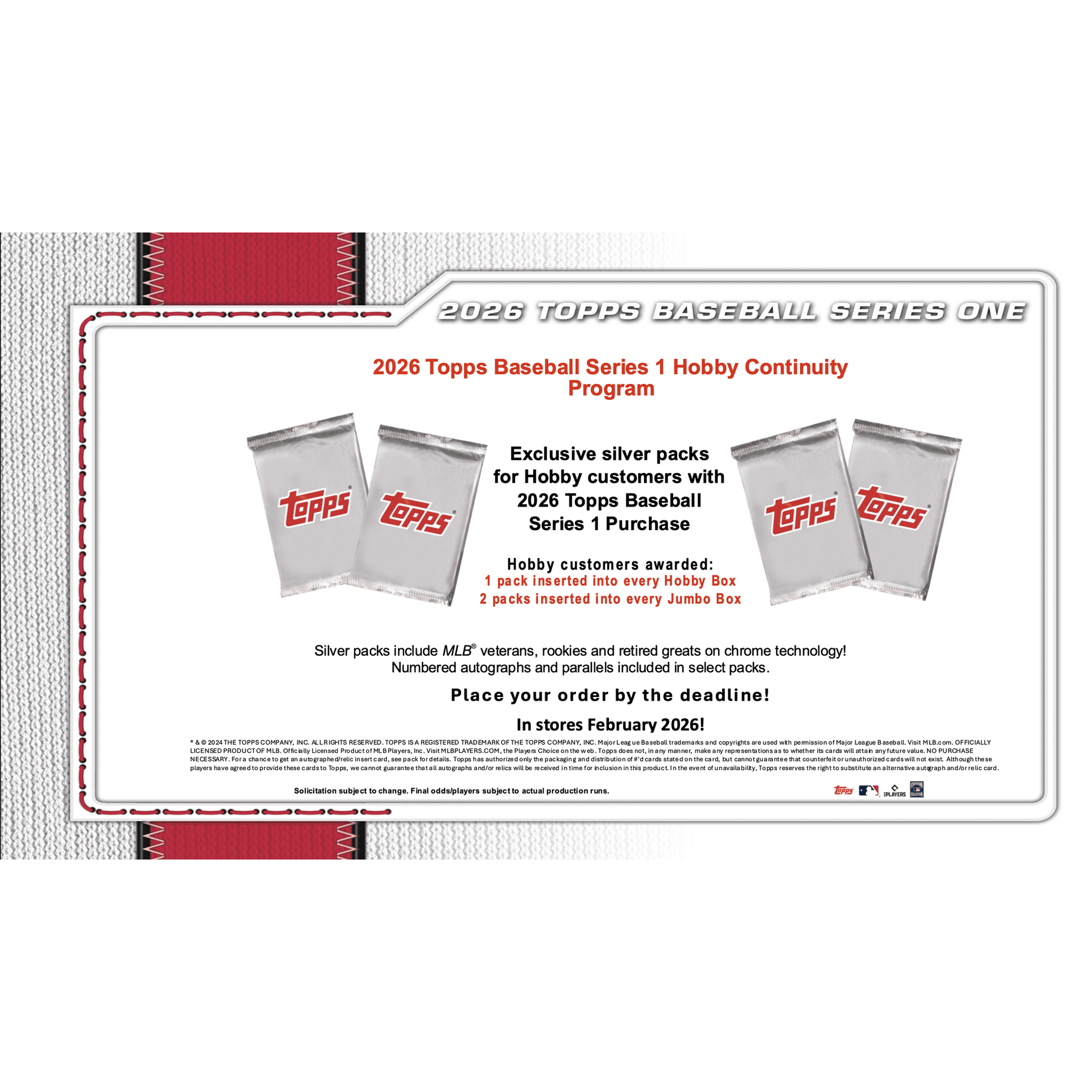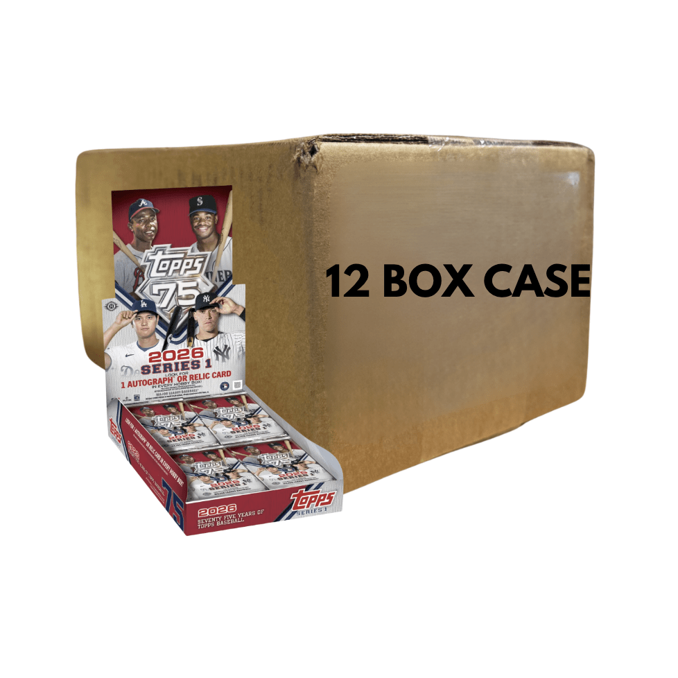 Celebrate the 75th anniversary of Topps Baseball with 2026 Series 1. This sealed hobby case delivers a deep checklist of MLB stars, legends, and top rookies across base cards, inserts, autographs, and relics, making it a cornerstone release for all collectors.
