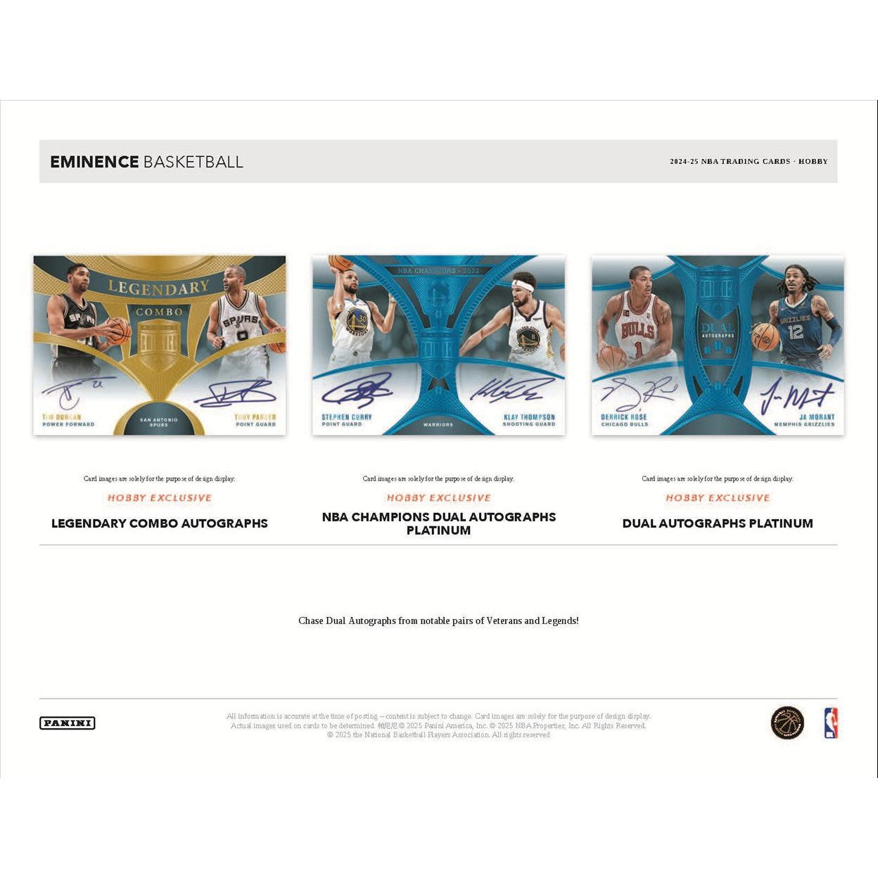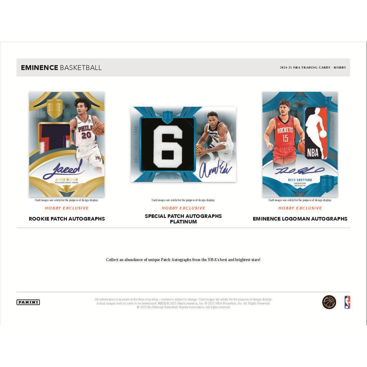 The long-awaited return of Eminence Basketball is here! 2024-25 Panini Eminence delivers an ultra-premium experience featuring top-tier autographs, stunning memorabilia, and precious metal cards. Each box averages nine on-card autographs and one additional card, showcasing the NBA’s elite talent. Collect stunning Patch Autographs, iconic Dual Autographs from legends and veterans, and chase the ultra-rare cards embedded with real silver, gold, or platinum bars!
