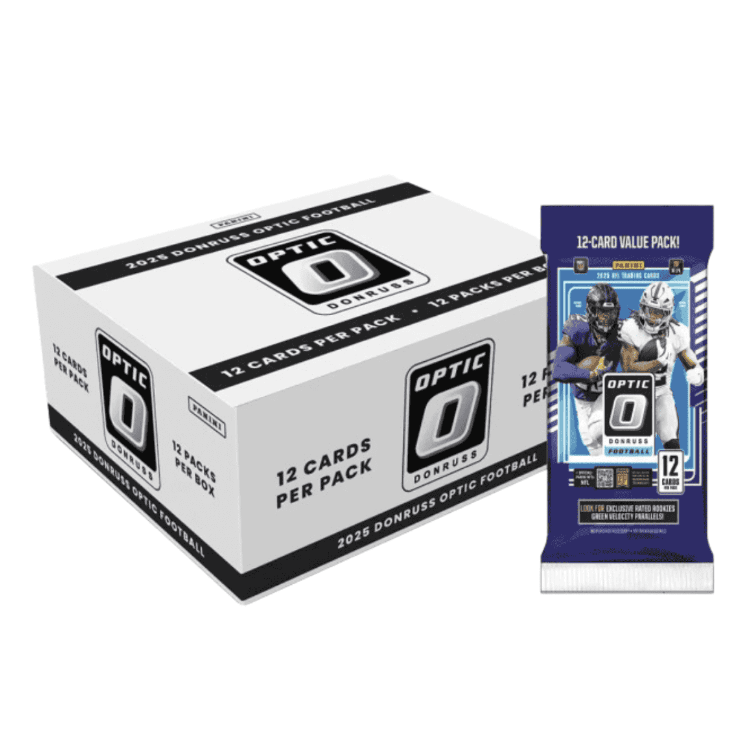 The fan-favorite Donruss Optic Football returns in 2025, combining the classic Donruss design with stunning Optichrome technology. The Fat Pack Box format delivers a high card count and exclusive parallels, making it a great option for collectors looking to build sets and chase hits.