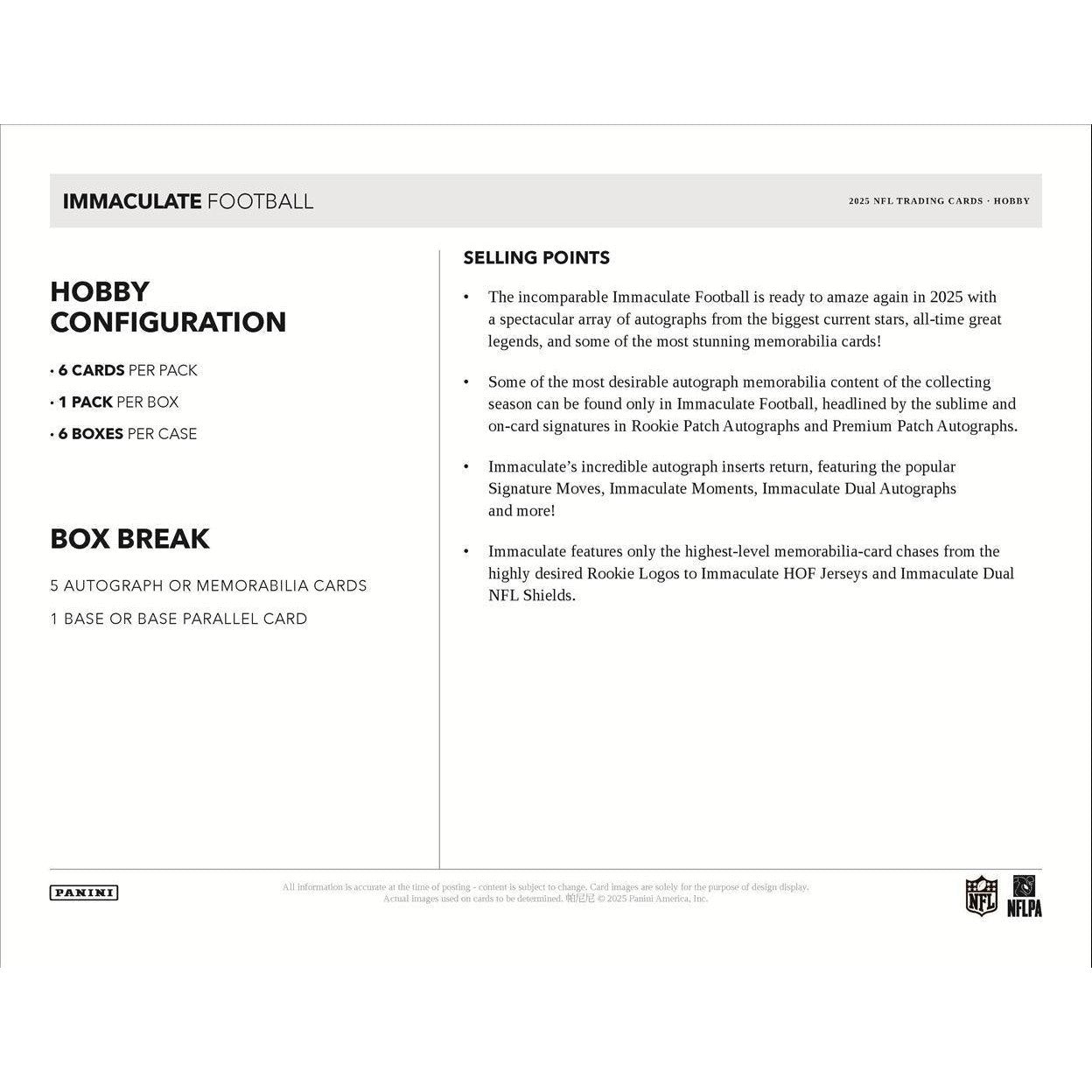 2025 Panini Immaculate Football Hobby Box
