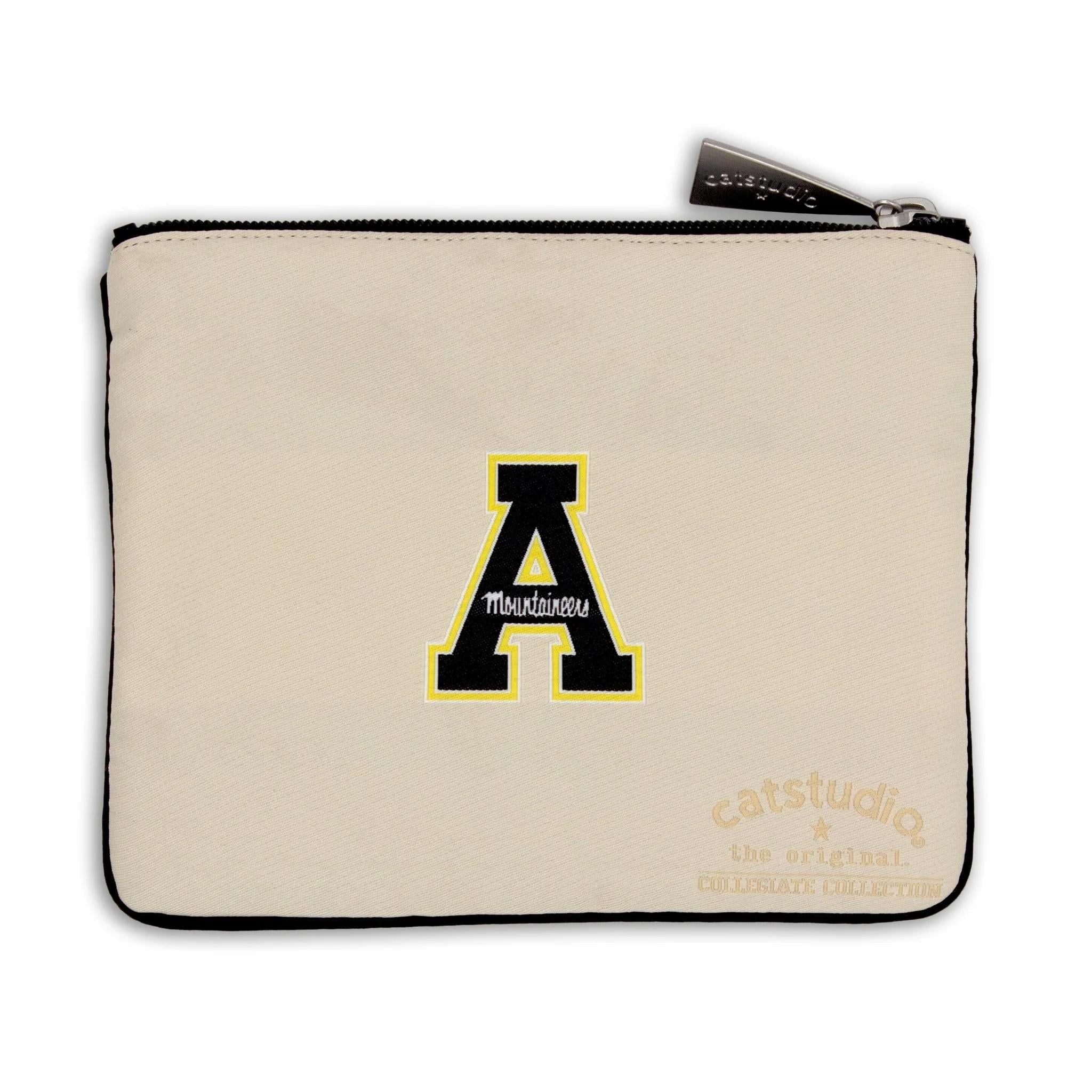 This original woven design celebrates Appalachian State University—go Mountaineers! The Collegiate Zip Pouch is a handy-sized essential for carrying keys, cash, cards, cosmetics, or any of life’s small necessities. Measuring 5x7 inches, it features a chic zipper with pull, signature collegiate black lining, and an intricately woven (not printed) design that showcases authentic App State pride.