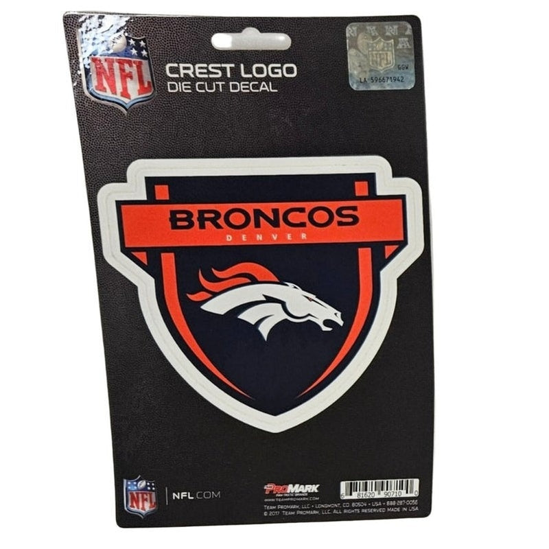 [message]Add a touch of team pride to your car, laptop, or any smooth surface with this officially licensed Denver Broncos Crest Logo Decal! Measuring 4.5"x5.5", this decal features the team's iconic crest logo. Show your passion and inspire others with this high-quality decal!