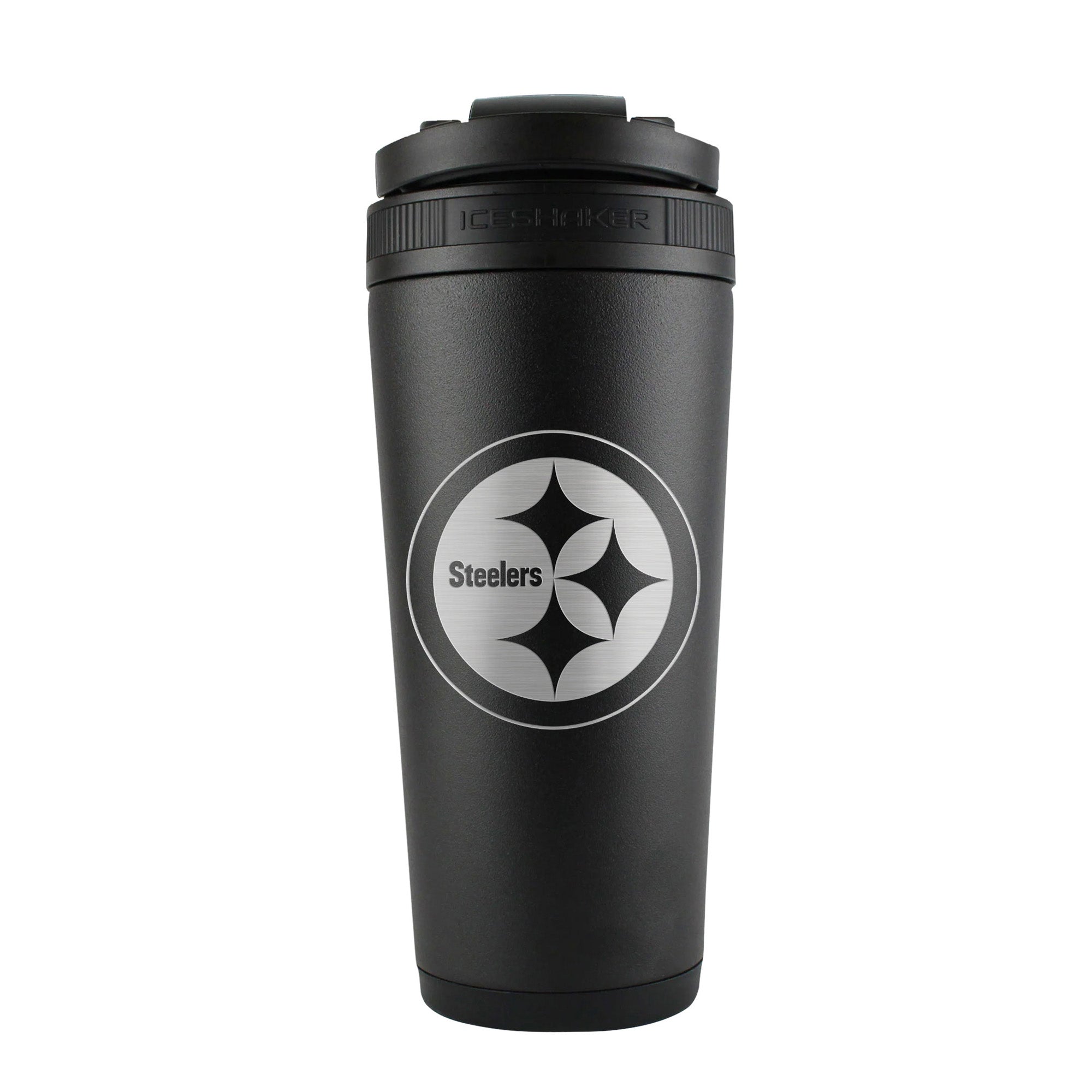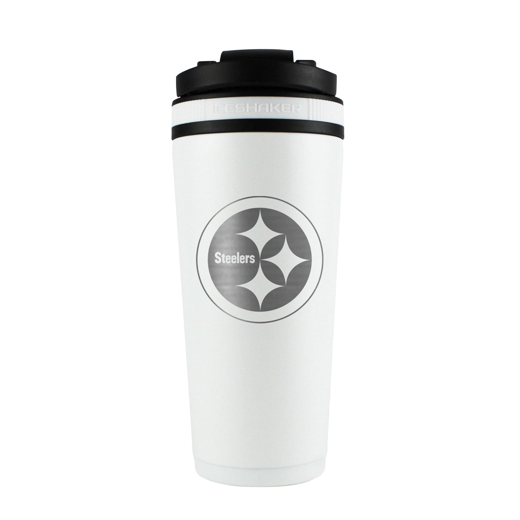 Introducing the Officially Licensed Pittsburgh Steelers 26oz Ice Shaker, designed in partnership with WinCraft by Fanatics! The iconic Steelers logo is expertly engraved on the back of the bottle, making it a must-have for any die-hard fan. This shaker also boasts an impressive feature - it keeps your drinks ice-cold for over 30 hours! And for easy clean up, simply place it on the top rack of your dishwasher. Don't miss out on this game-changing product - get yours now and elevate your game day experience!