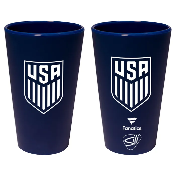 Enjoy your favorite beverages in style with the US Soccer National Team 16 oz Silicone Pint Glass. Made from durable, non-toxic silicone, this unbreakable pint glass is perfect for tailgates, parties, or everyday use. Its navy blue design shows off your team pride while the microwave, freezer, and dishwasher-safe construction makes it convenient for any occasion.