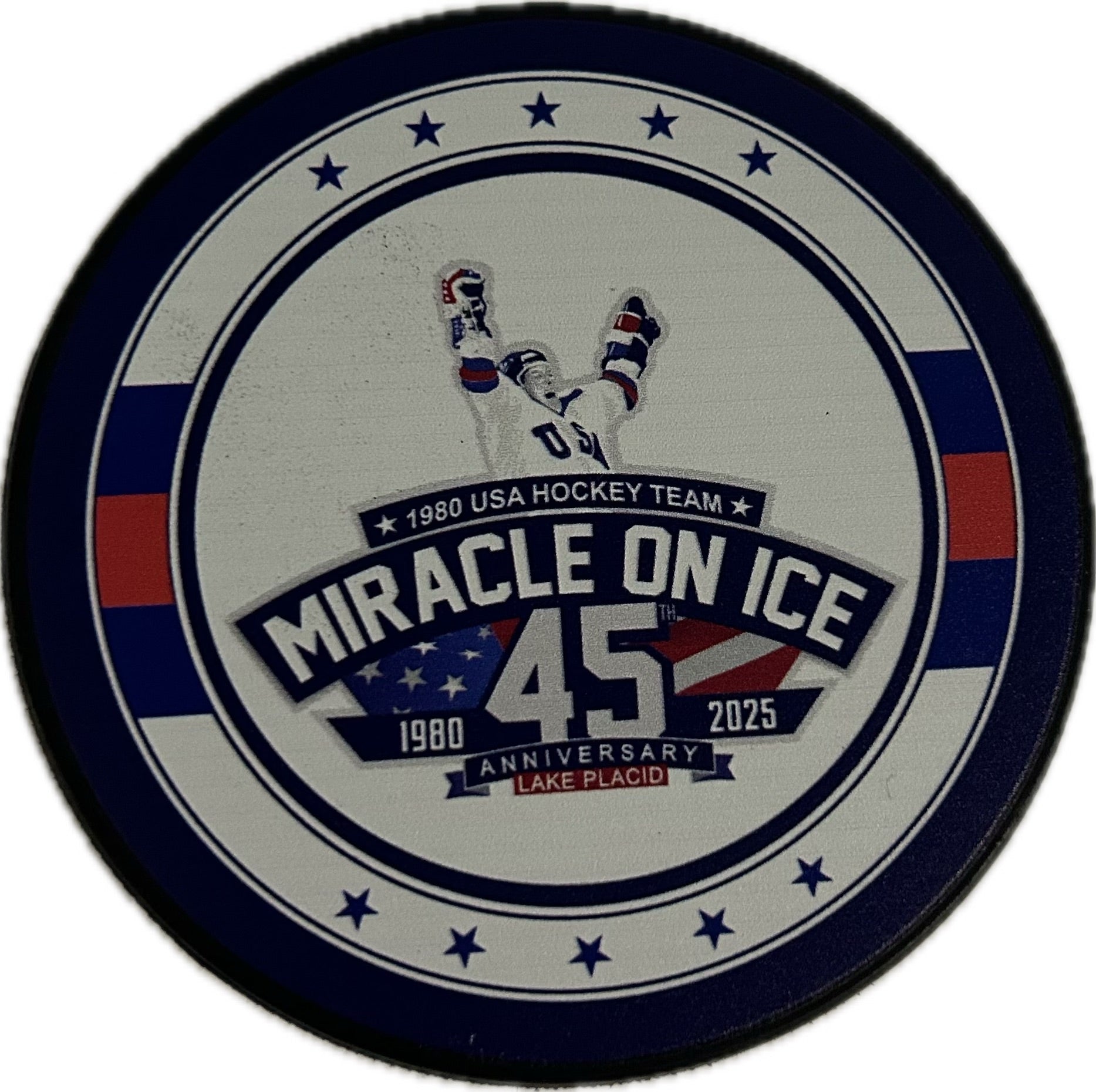 Celebrate the 45th anniversary of the iconic "Miracle on Ice" with this limited edition USA Hockey puck. Relive the historic game and show your support for Team USA with this commemorative puck, a must-have for any hockey fan. Pre-order now to secure yours before they're gone!