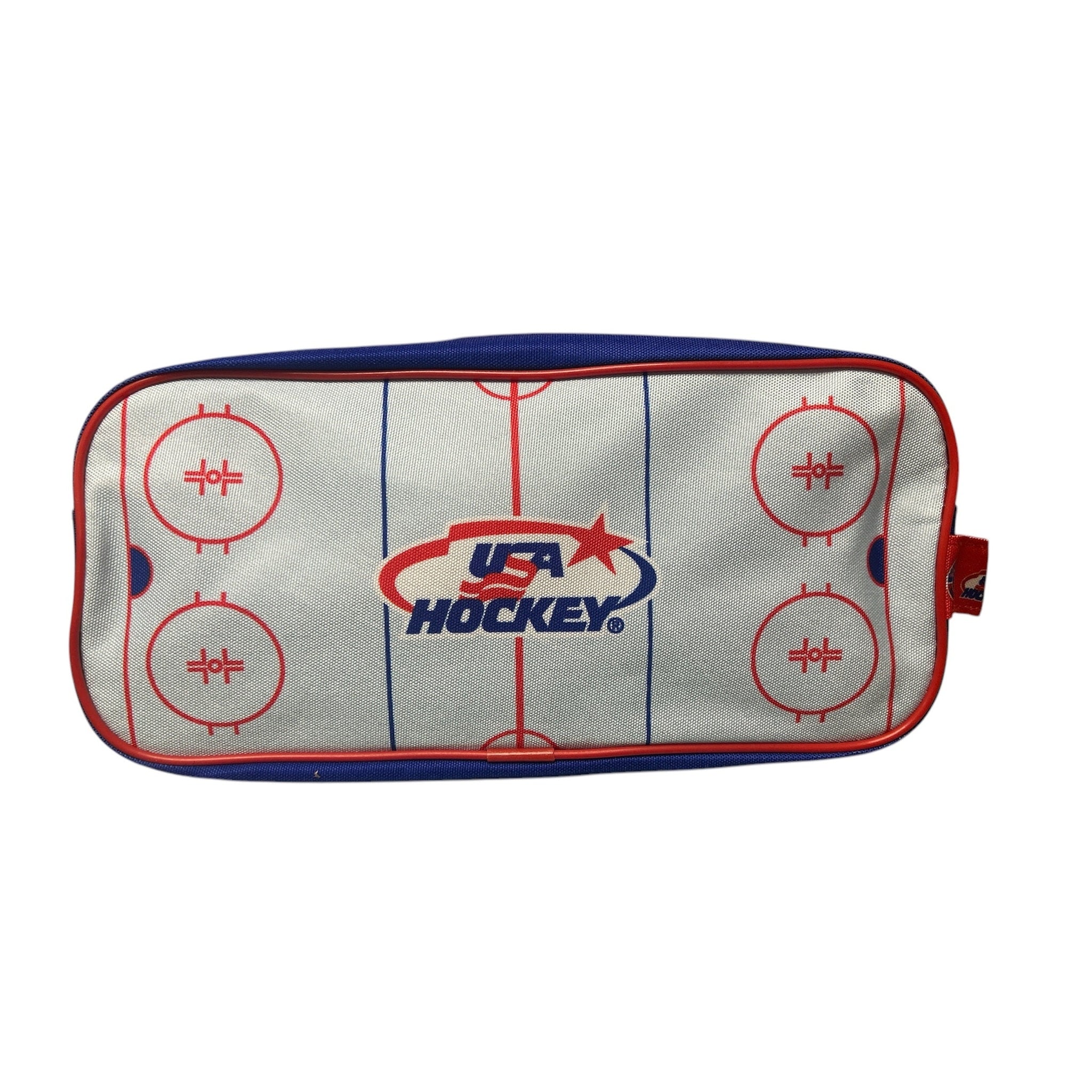 Perfect for hockey essentials on the go, the USA Hockey Miracle on Ice Eat Sleep Hockey Travel Kit Bag keeps your gear organized and easy to find. Designed to eliminate the frustration of digging through your hockey bag, this versatile accessory pouch is ideal for storing tape, wax, laces, and other must-have items. With durable construction and a bold hockey-inspired design, it transitions seamlessly from the rink to travel and everyday use.