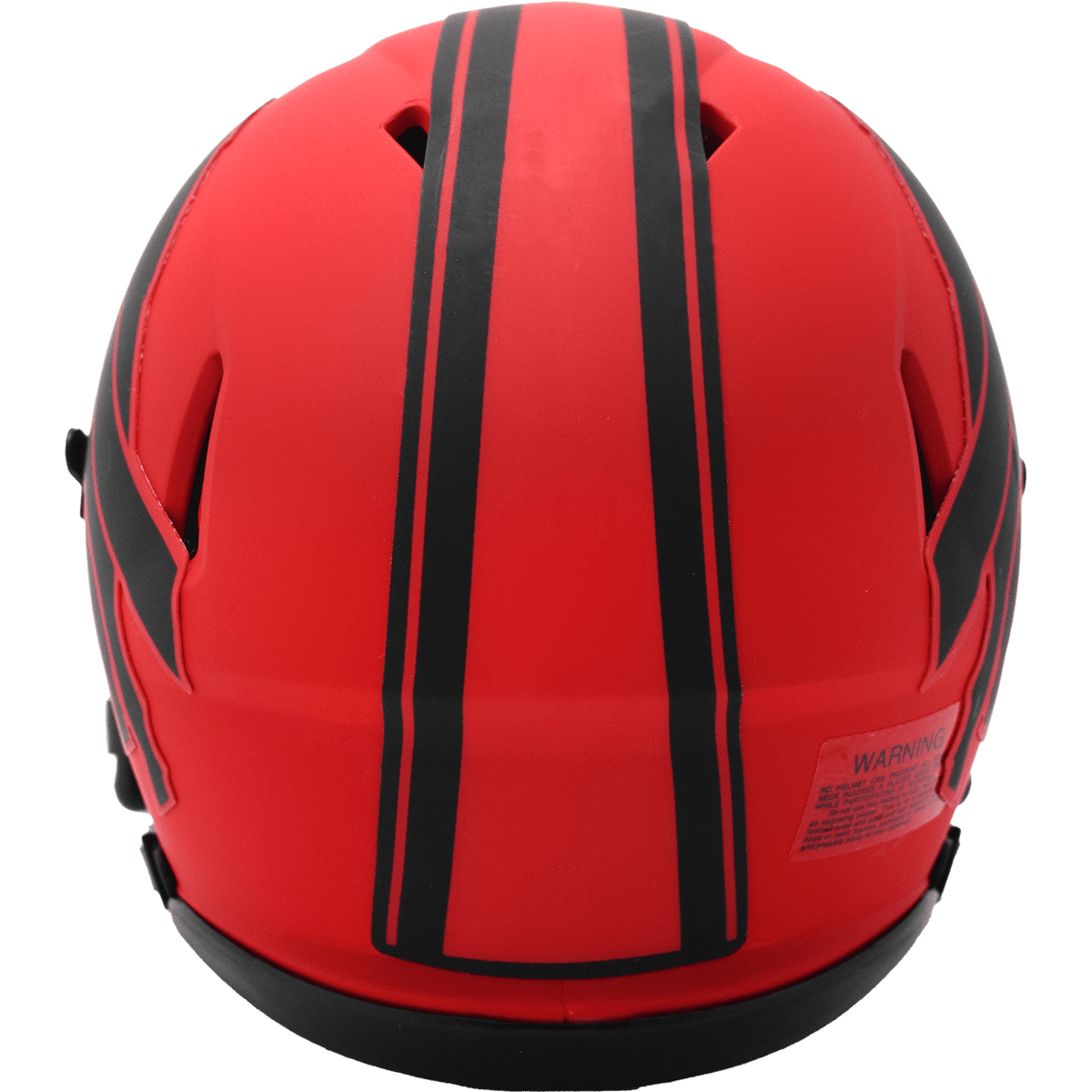 This isn't your typical mini helmet—it's a bold, modern tribute to Buffalo football. With its standout matte styling and sleek blacked-out details, the Bills Rave Alternate Mini Speed Helmet offers an eye-catching, collectible piece for fans who want something unique and memorable.