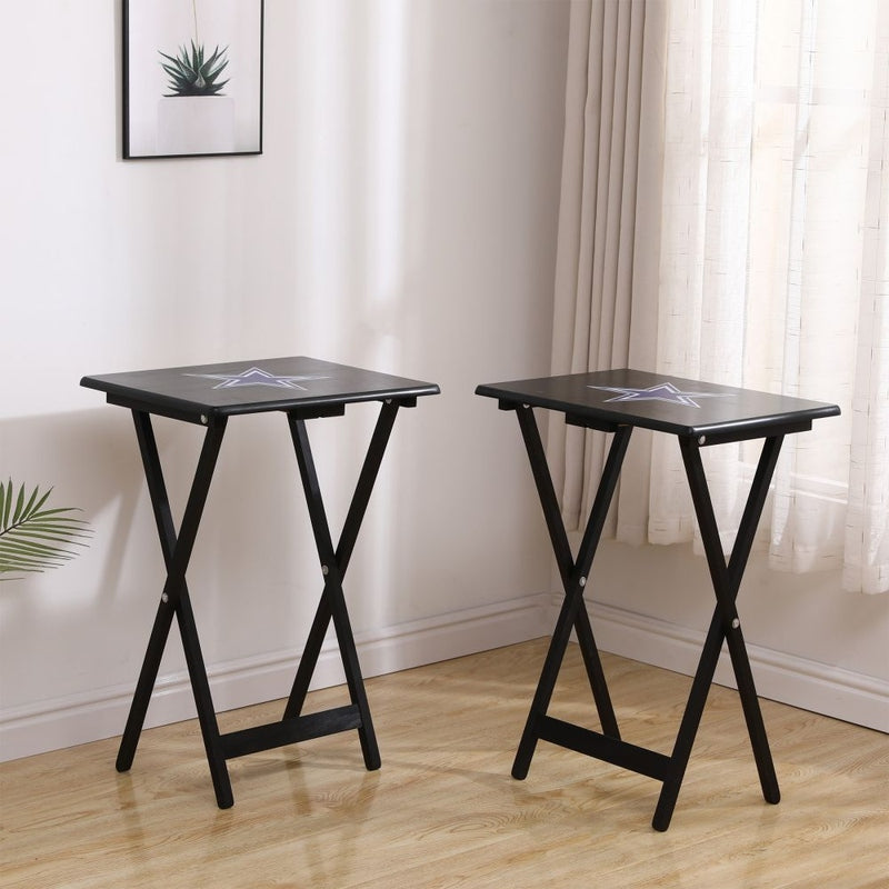 Introducing the NFL Official Licensed TV Snack Tray Set! Made of select hardwoods for durability and easy cleaning. Complete with team logos silk-screened on each tray, this set of 4 trays and storage rack is perfect for game day snacking. Measuring 26"L x 19"W x 14.5"H, show your team pride in style!