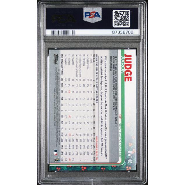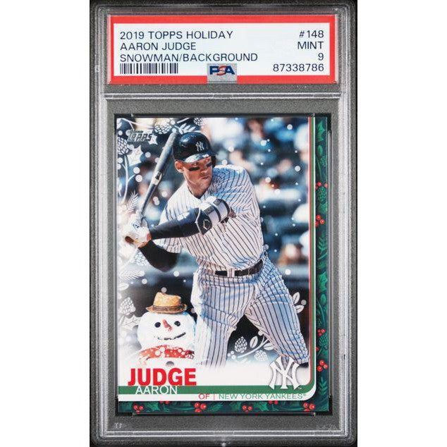 Celebrate one of baseball’s biggest stars with this Aaron Judge 2019 Topps Holiday #148, graded PSA 9. This festive release is known for its unique winter-themed designs, and the Snowman/Background variation adds a fun seasonal twist to Judge’s card. With sharp presentation, bright artwork, and a strong PSA grade, this is a standout collectible for both Aaron Judge fans and Holiday set enthusiasts.