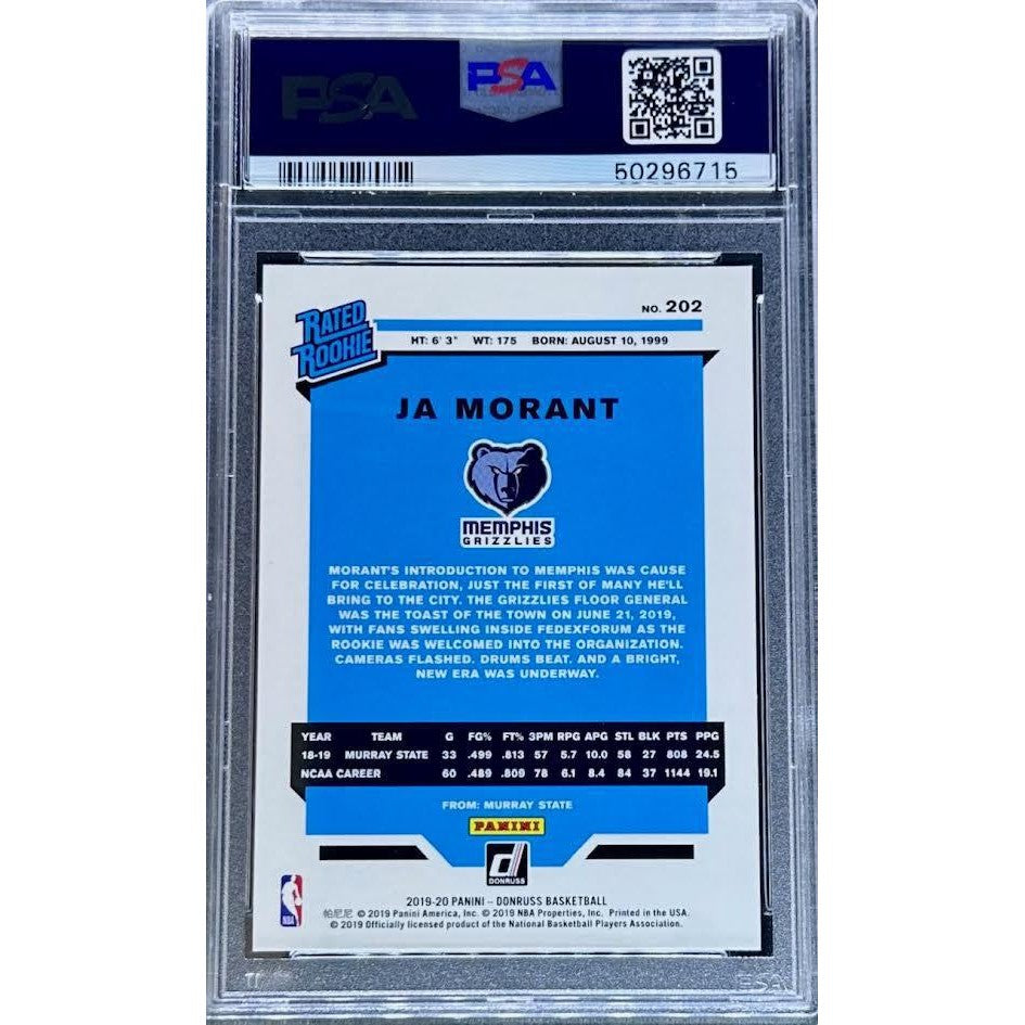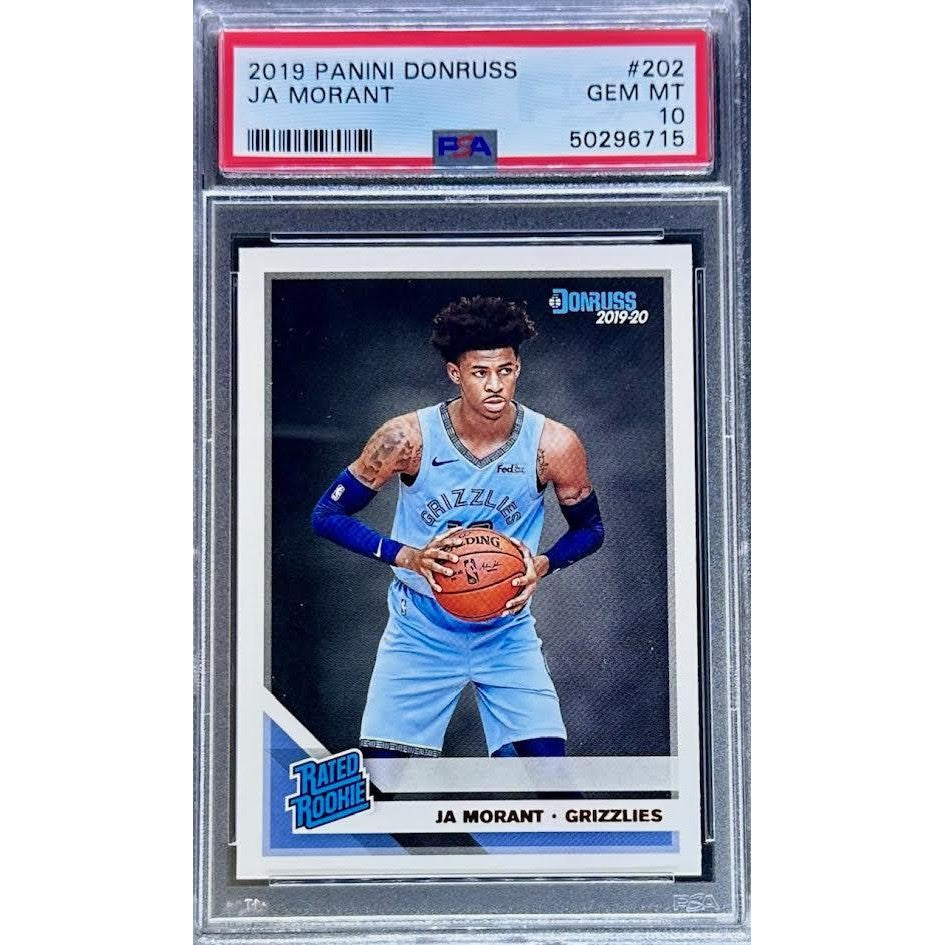 The Ja Morant 2019 Panini Donruss #202 PSA 10 is a key flagship rookie card capturing the All-Star guard at the start of his NBA career. Graded Gem Mint, it delivers outstanding corners, surface, and centering, making it a strong piece for collectors seeking early, highly graded Morant cards.