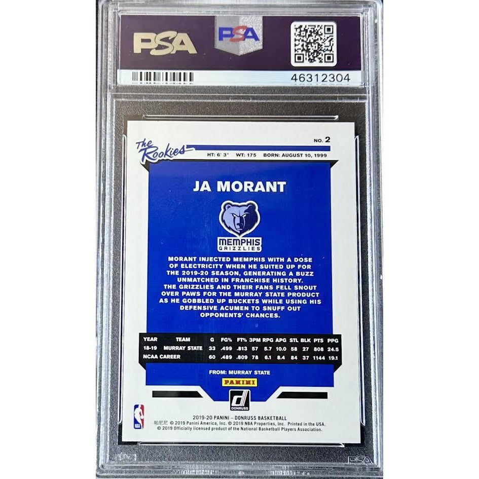 A premium rookie insert celebrating one of the NBA’s most dynamic young stars. The Ja Morant 2019 Panini Donruss The Rookies #2, graded PSA 10, delivers standout presentation, strong demand, and long-term appeal for collectors building modern basketball portfolios.