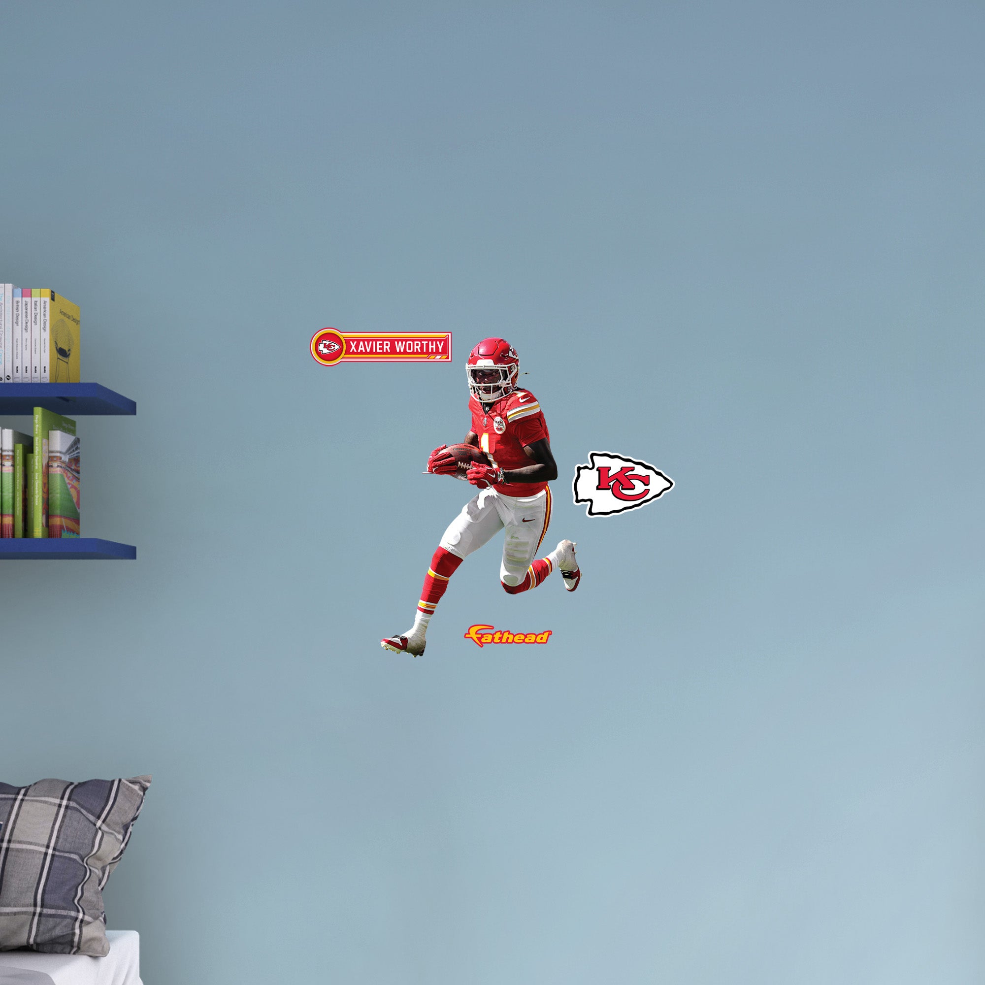 Transform your space with the Xavier Worthy RealBig Collection, featuring Official NFL Kansas City Chiefs Reusable Vinyl Wall Decals. These precision die-cut decals offer a seamless and vibrant addition to your walls, capturing the true essence of your favorite team. Made from premium vinyl, they resist scratches and fading, ensuring your space stays dynamic and exciting for years. The low-tack adhesive makes application and repositioning a breeze, allowing you to customize your decor without any wall damage or residue.