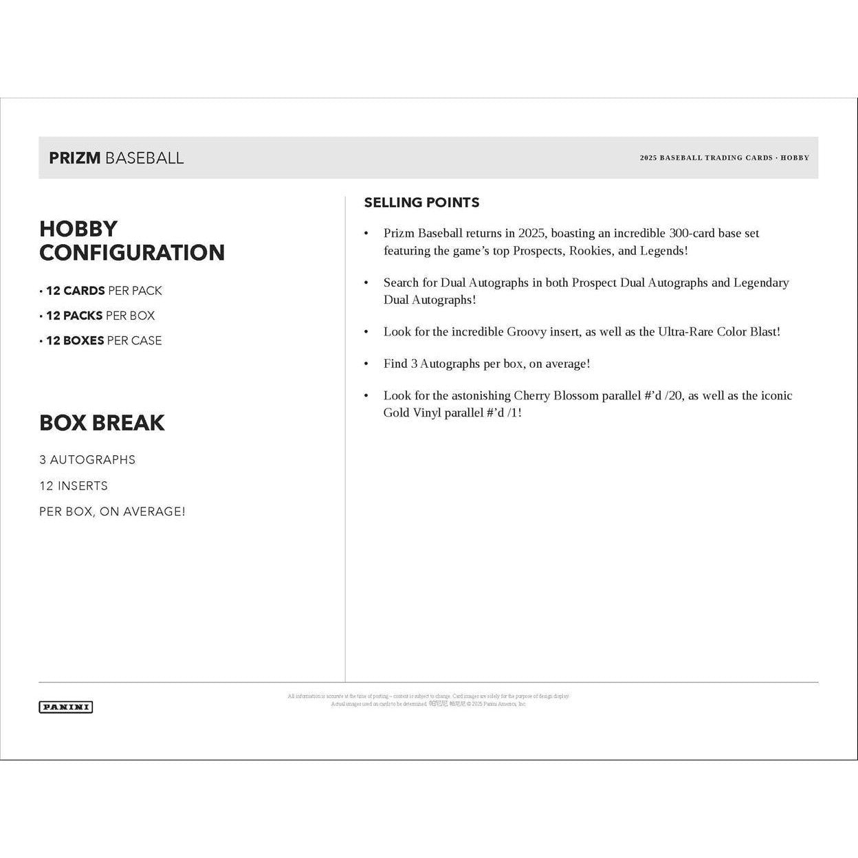 Prizm Baseball returns for 2025 with bold designs, rare parallels, and massive chase hits! Each Hobby Box delivers 3 Autographs and 12 Inserts, on average.