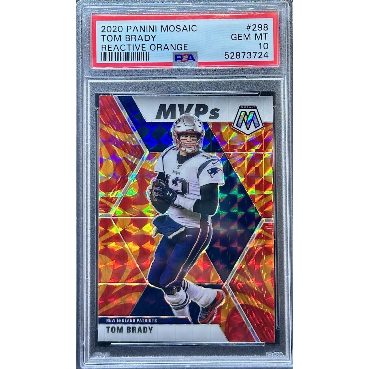 Own a PSA 10 Tom Brady 2020 Mosaic Reactive Orange collectible!