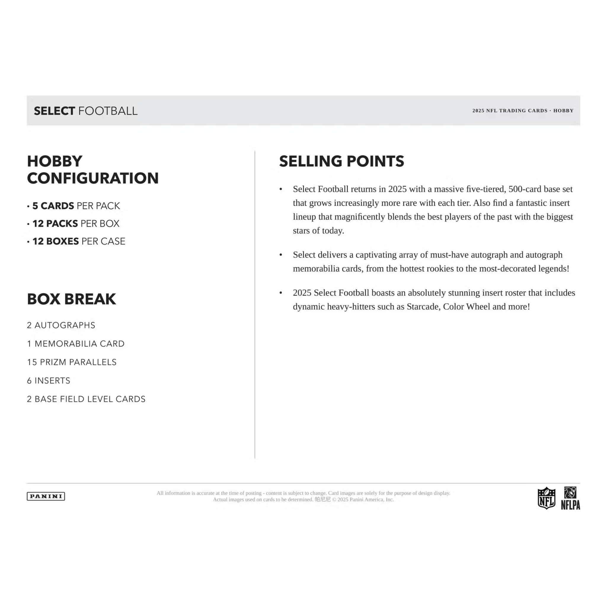 With tiered rarity, colorful Prizm parallels, premium autographs, and highly collectible inserts, 2025 Panini Select Football Hobby Boxes deliver one of the most complete breaking experiences in football.