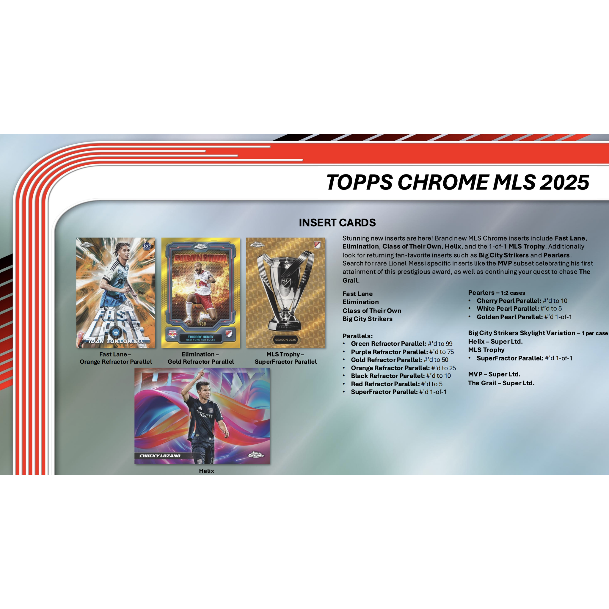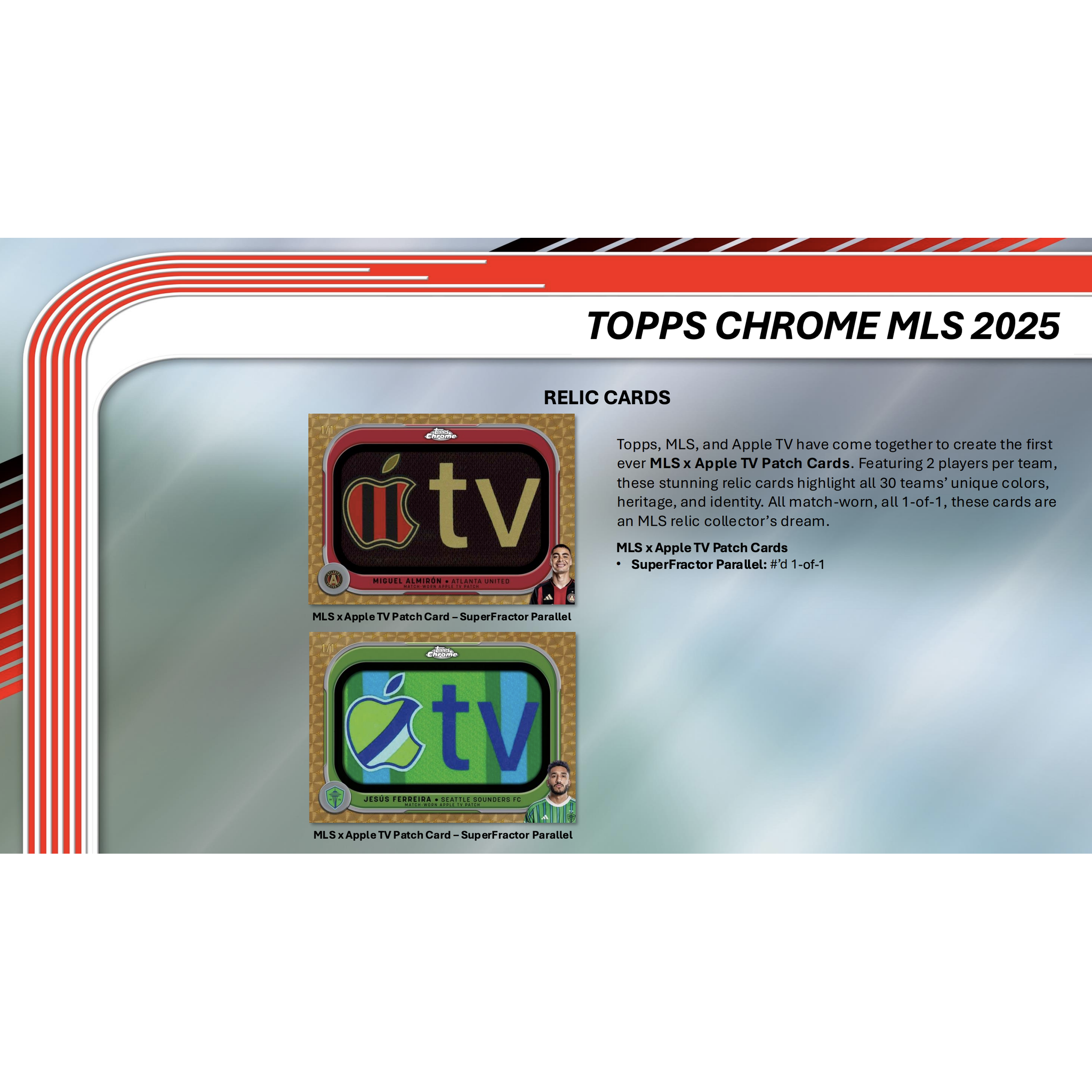 Topps Chrome Major League Soccer 2025 has arrived, bringing the biggest stars of MLS onto the stunning Chrome design. Featuring the top players of the 2025 season—including rising phenoms, established stars, and legendary icons—this release is a must-have for collectors who appreciate high-end Chrome cards with photography-driven visuals and premium content.