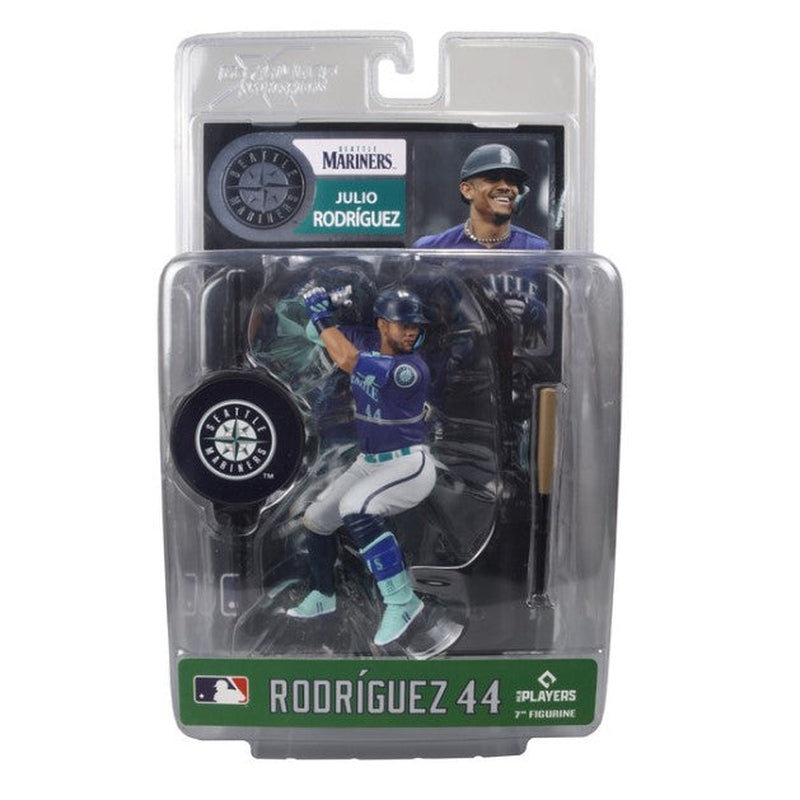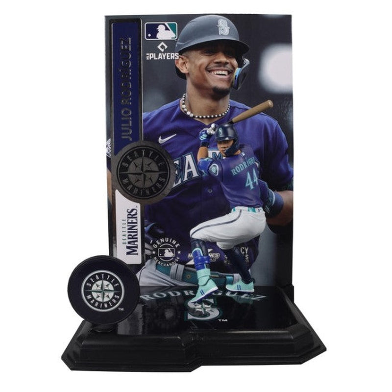 Show your support for the Seattle Mariners with this highly detailed Julio Rodriguez figure from McFarlane's SportsPicks MLB Legacy Series. Featuring an official MLB and MLBPA license, this 7" scale figure is posed in a dynamic stance and comes with a backdrop and team logo base. A must-have for any fan!