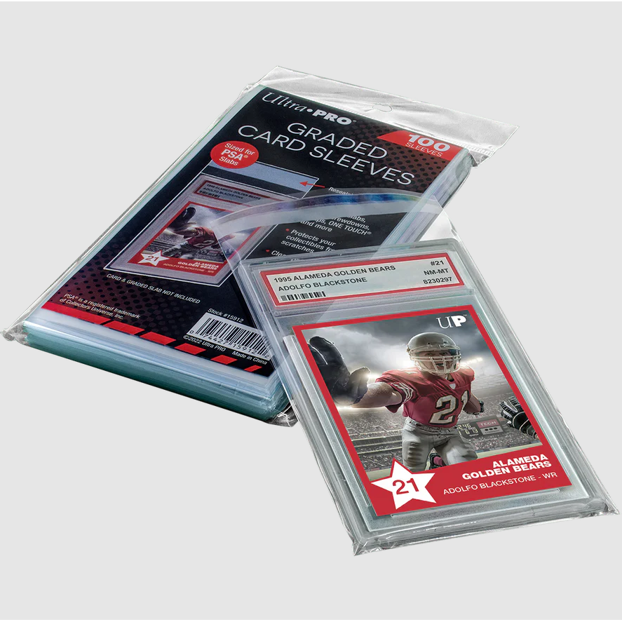 Ultra-clear, archival-grade sleeve ideal for PSA graded slabs. Keeps graded card and its holder clean and safe. Protects the graded cardholder from scratches. The resealable strip allows for easy removal. 100 count per pack.